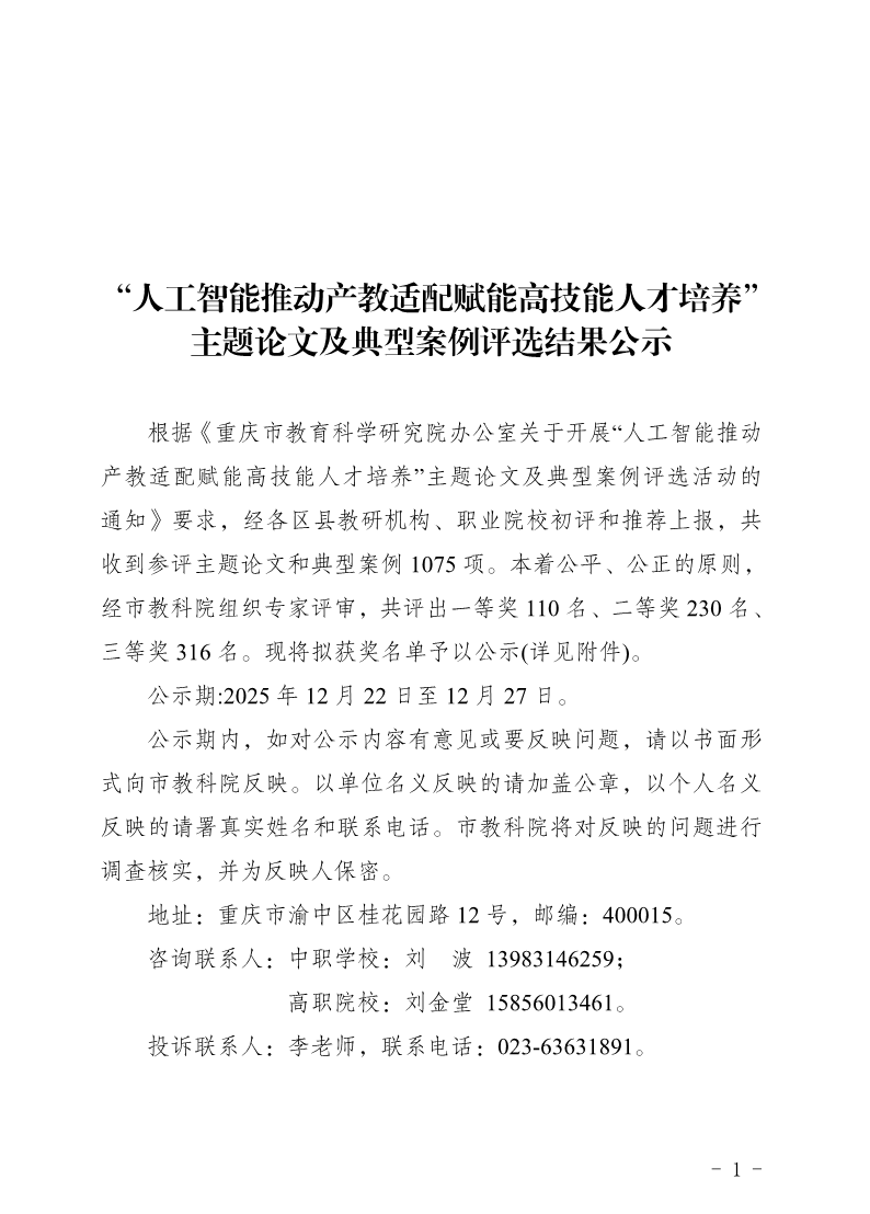 “人工智能推动产教适配赋能高技能人才培养”主题论文及典型案例评选结果公示
